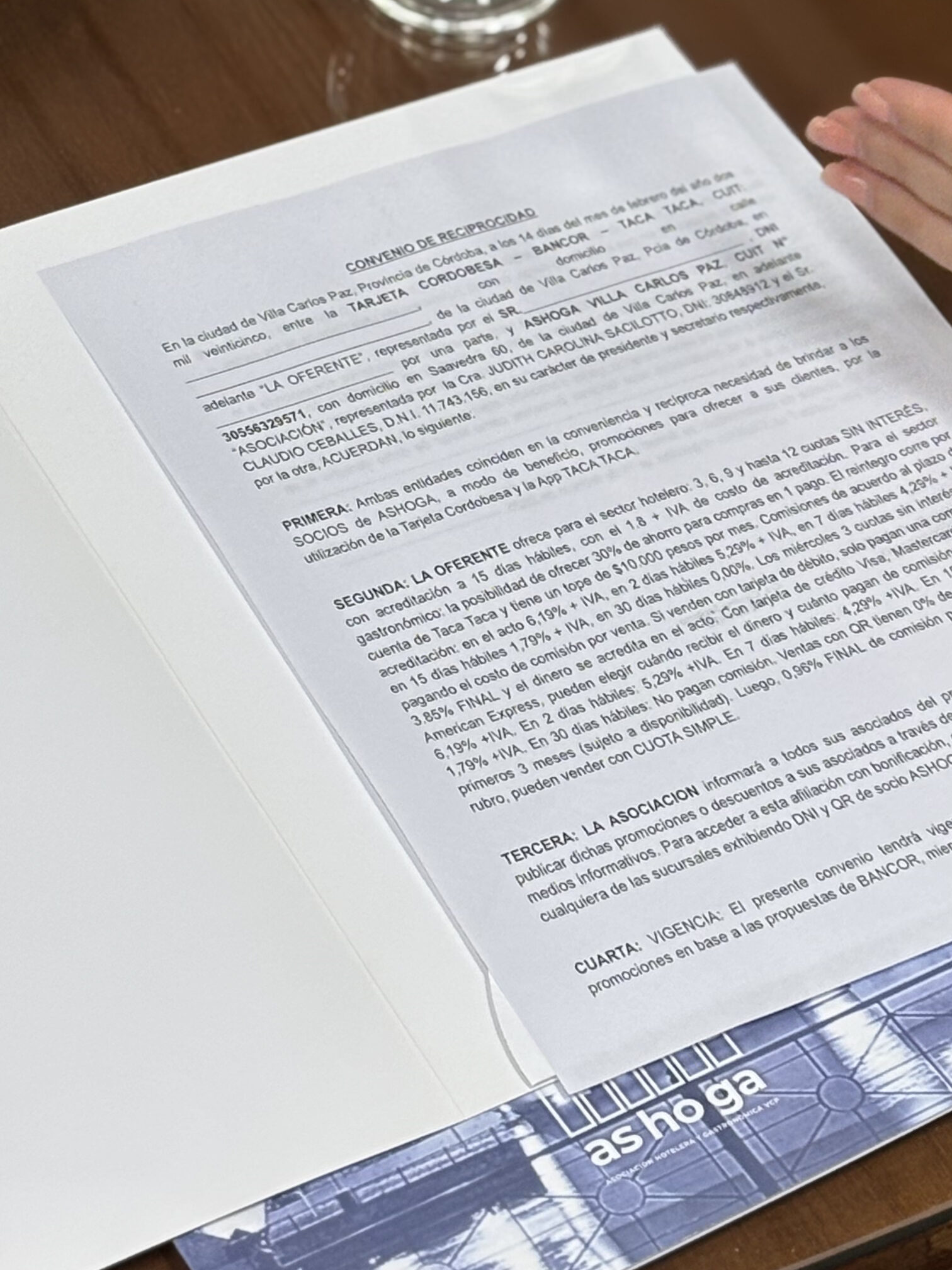 En una iniciativa que busca potenciar la competitividad del sector hotelero y gastronómico, la Asociación Hotelera Gastronómica y Afines de Villa Carlos Paz (ASHOGA) firmó un convenio de colaboración con TACA TACA, representado por su ejecutivo de cuentas, Mariano Suárez. En el acto estuvieron presentes Carolina Sacilotto, presidente de ASHOGA, y Jair Muñoz, vocal de la institución.